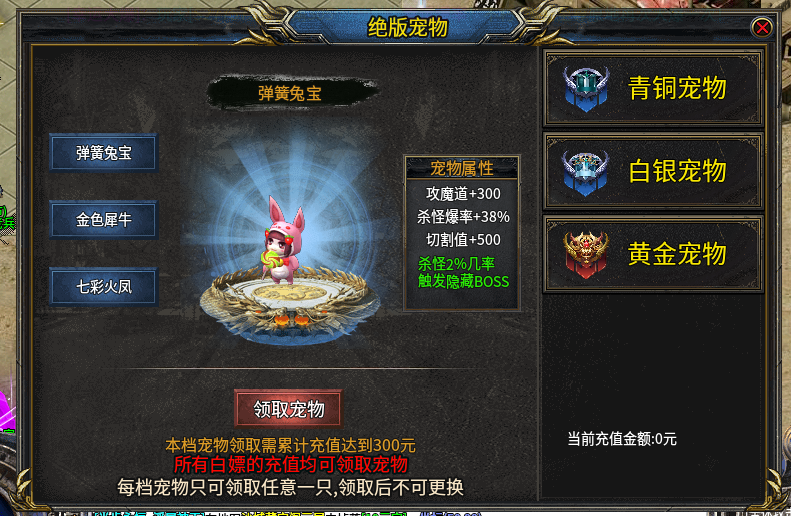 5:新增宠物系统附带全新系统玩法,白嫖玩家也是可以享有的